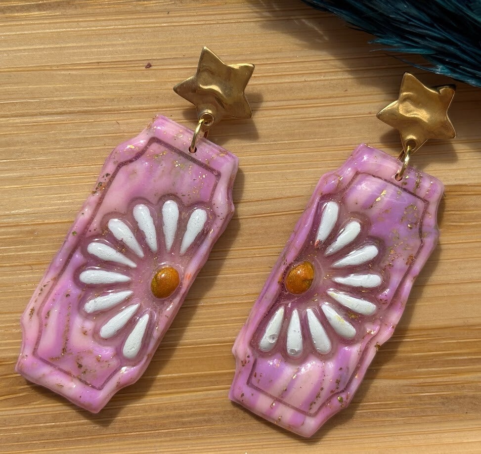 Découvrez les boucles d'oreilles Lucia ,une création unique de ma collection éveil printanier. Un design floral vibrant alliant étoile dorée en acier inoxydable et motifs printaniers pour illuminer votre style. commandez votre pièce artisanale dès maintenant !
